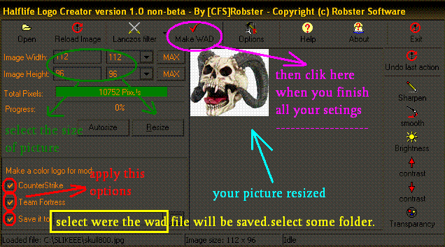 click make wad button and when say sucesful go to that folder where the wad files are saved (on picture the text is yelow)then select the file ""pldecal.wad""
